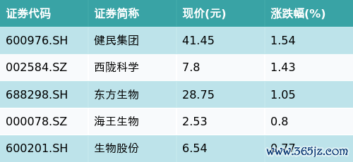 截至收盘股指配资,流感主题涨跌幅最高的五只股票为:健民集团(600976.SH)、西陇科学(002584.SZ)、东方生物(688298.SH)、海王生物(000078.SZ)与生物股份(600201.SH)。详情见下表: